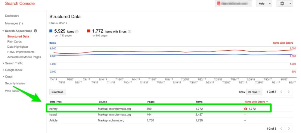 Fortunately, Google has done the hard work for us. After placing structured data on-site pages to the path Google Search Console> Search Appearance> Structured Data Go and check for possible errors. You might encounter something like the picture below after going to this section: