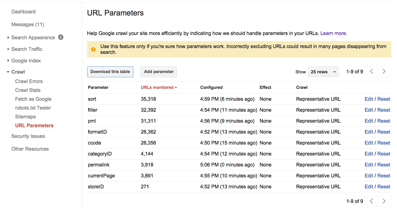 Using the tool Parameter URL You can manage site monitoring budgets and duplicate content at the same time.