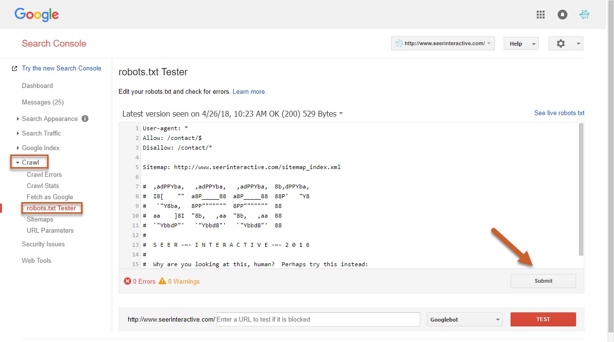 Tool Robots.txt Tester Allows webmasters to know precisely which parts of the site are blocked by Google’s robots.