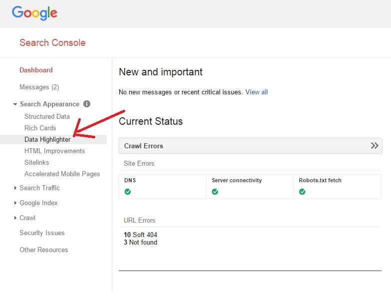 - First, on the Google search console route Search Appearance> Data Highlighter go.