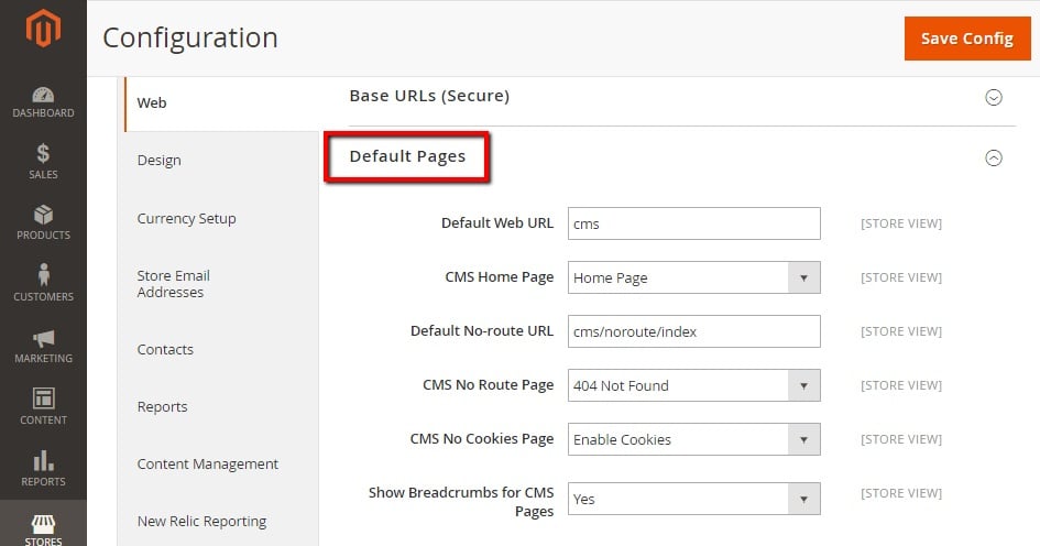 Change the default cms settings :