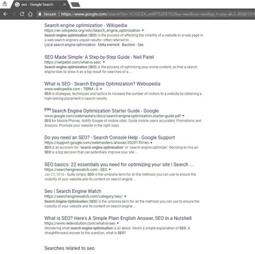Search engines are constantly changing and searchers have to update their information accordingly. Here’s an example to show you the nature of the job. Take for example the keyword “SEO”. The search results for this word in previous years were as follows: