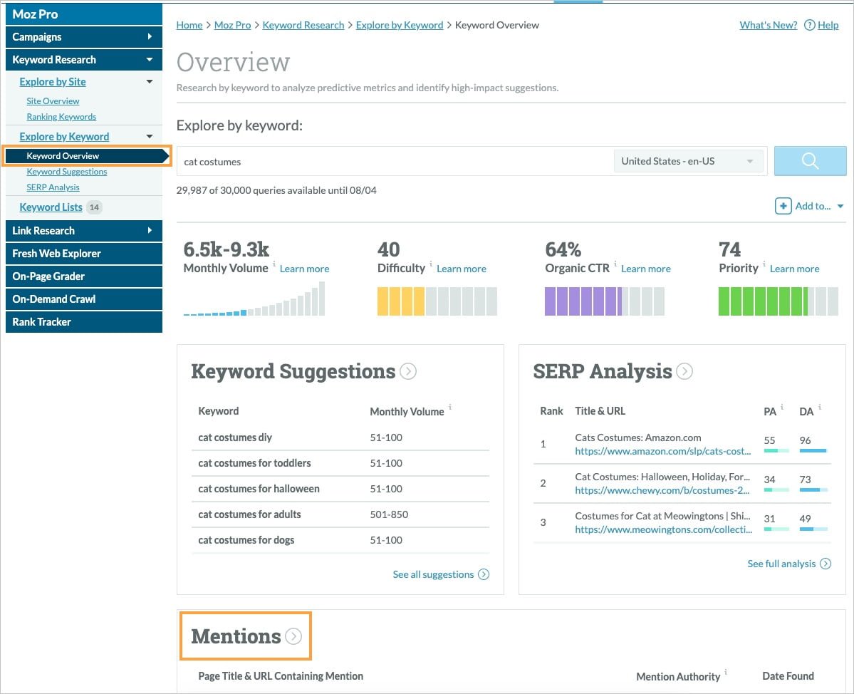 Moz Keyword Explorer