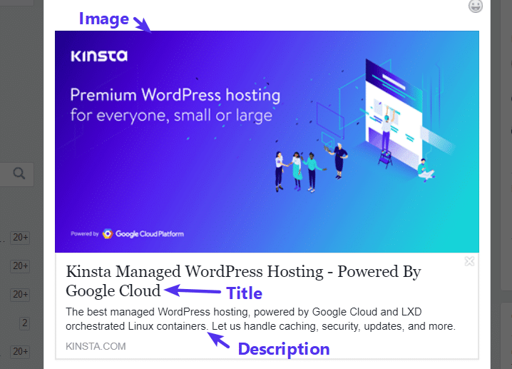 Ces informations s’affichent lors du partage d’URL de contenu sur les réseaux sociaux: