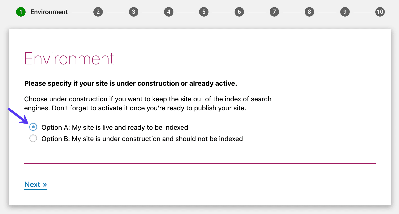 En cliquant sur l’assistant de configuration (Configuration rapide), le Plug-in Yoast SEO vous demandera des informations de configuration initiale.