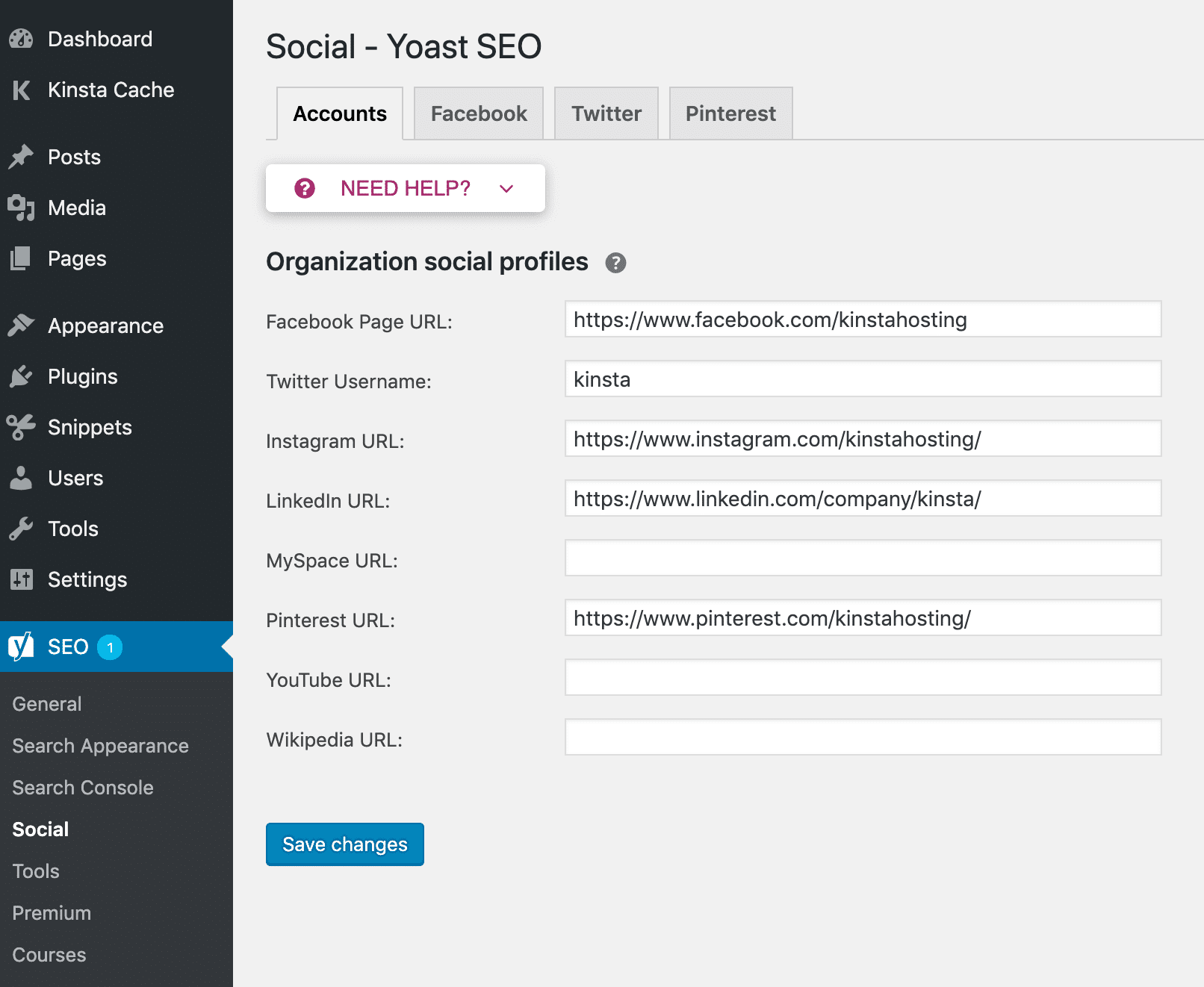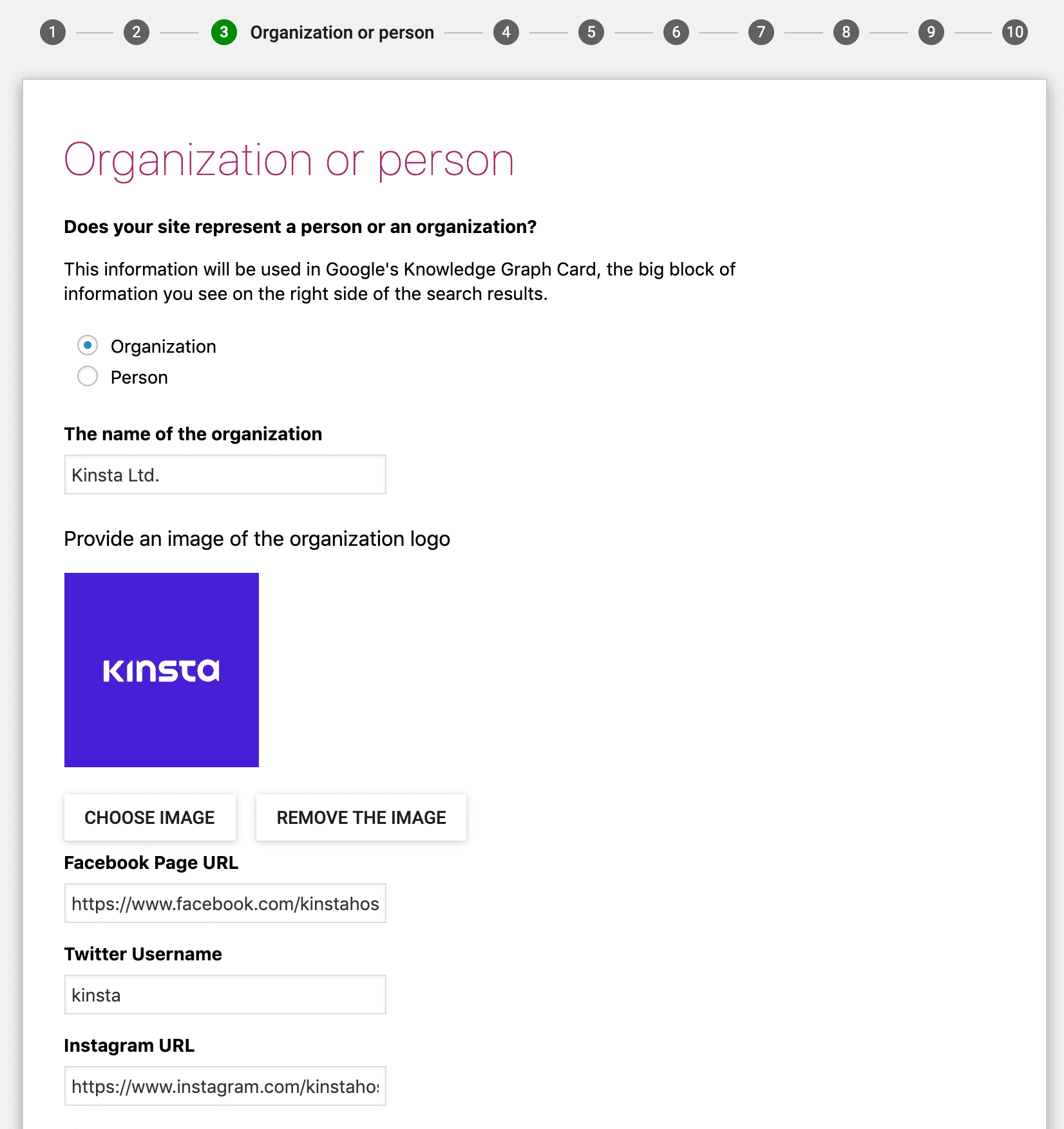 Entrez ici tous les réseaux sociaux associés. Si le site Web en question appartient à une entreprise, les réseaux sociaux de l’entreprise doivent être inclus. Vous n’avez pas besoin de remplir tous les éléments. Remplissez uniquement ceux avec lesquels vous avez un profil.