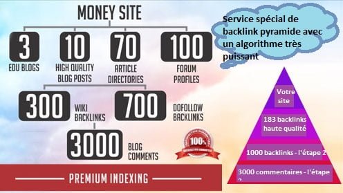 Remarque: Tous les backlinks de ce service( backlink pyramide ) sont permanents et ne nécessitent pas de renouvellement mensuel et sont payés une fois pour toutes.