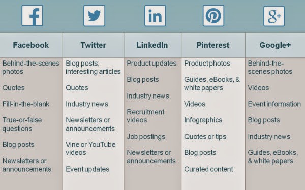 Pour commencer, faites une liste des types de contenu que vous souhaitez publier régulièrement. Gardez à l’esprit que tout votre contenu n’est pas égoïste ou promotionnel. Une pratique courante dans les médias sociaux est la règle des 80/20, ce qui signifie que 80% du contenu est utile, éducatif ou divertissant, et 20% concerne les ventes.